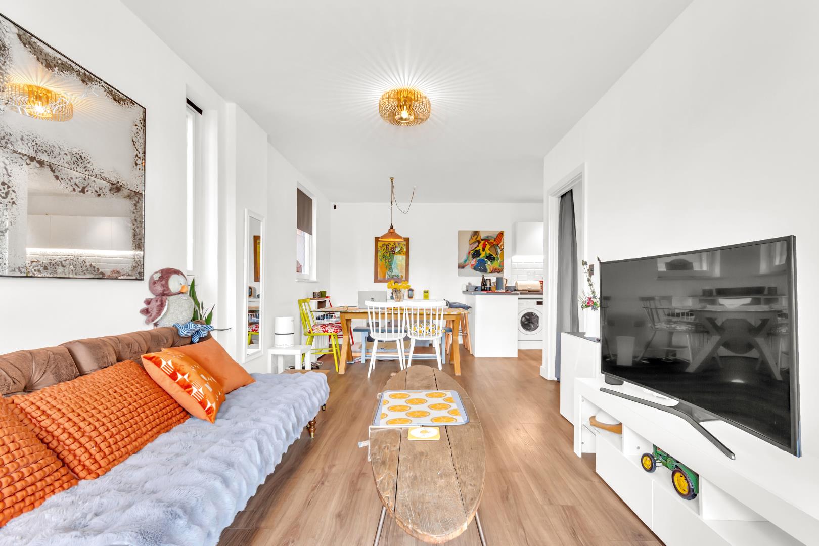 At the entrance there’s a wide hallway with wooden flooring which runs through the property.