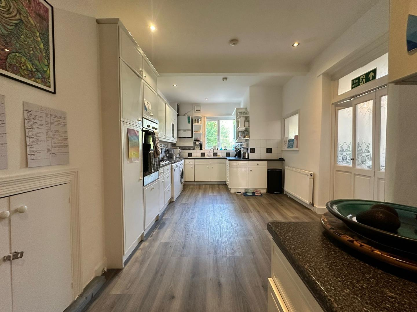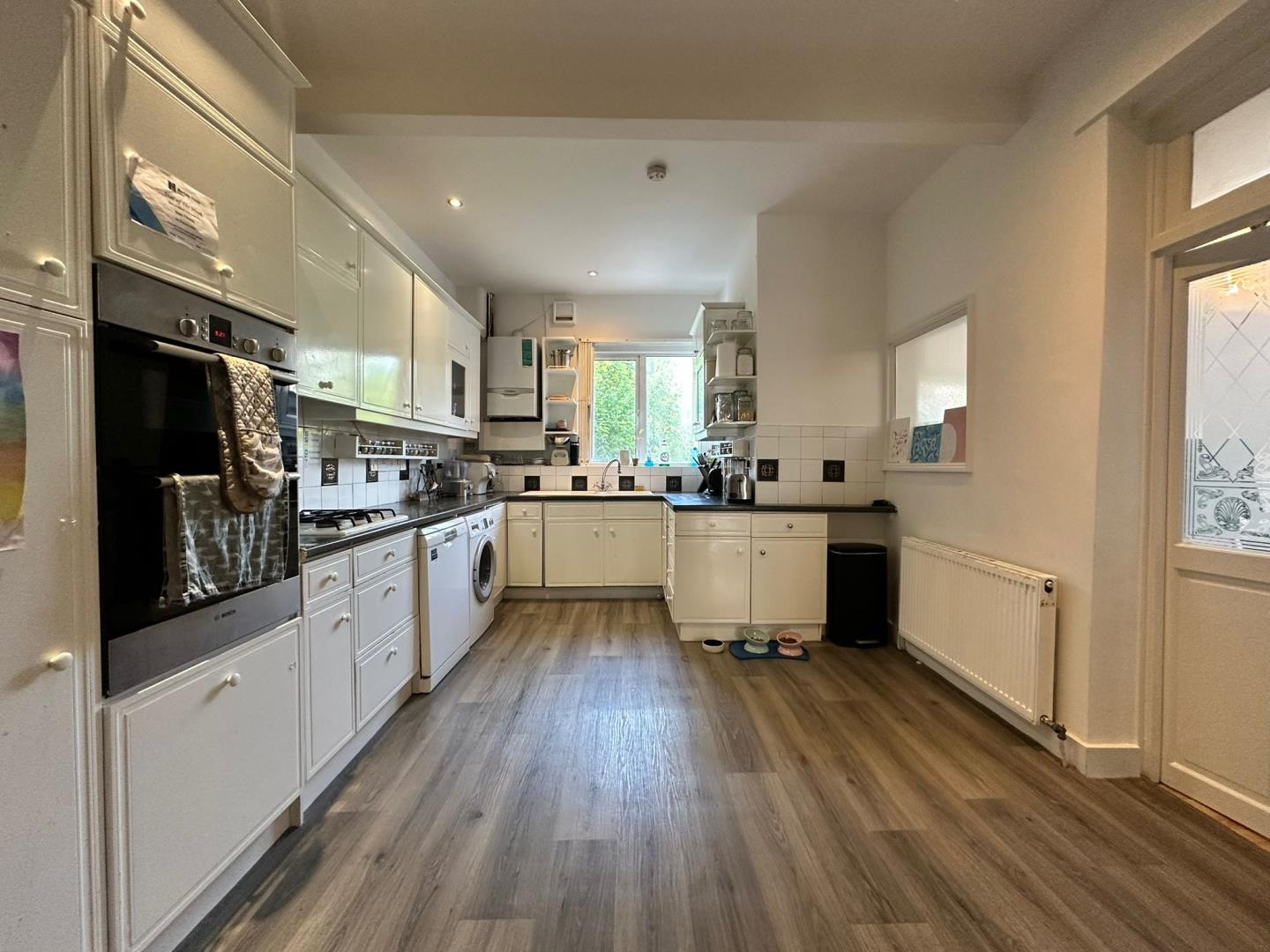 To the left is the kitchen. The kitchen has hard flooring, ample storage cupboard space and plumbing for a washing machine and dish washer. (not included with property), having a Bosch gas cooker, Bosch oven, and window looking onto the rear garden. The property comes with a large Samsung American fridge freezer.